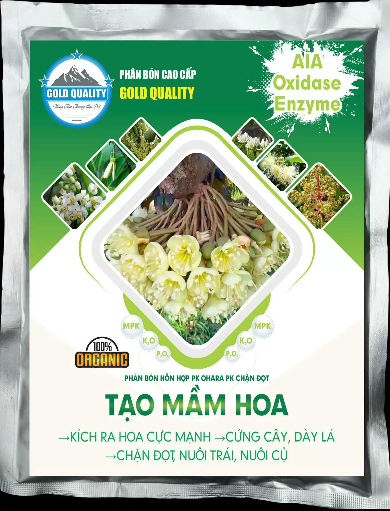 CÔNG DỤNG:– Tạo mầm hoa cực tốt, bung hoa mạnh. – Giúp hạt phấn sống lâu, tăng tối đa khả năng đậu trái. – Chống rụng bông, trái non do thiếu hụt dinh dưỡng hoặc do thời tiết bất lợi. Cung cấp đầy đủ các khoáng chất cần thiết trong giai đoạn tạo mầm hoa, đậu...